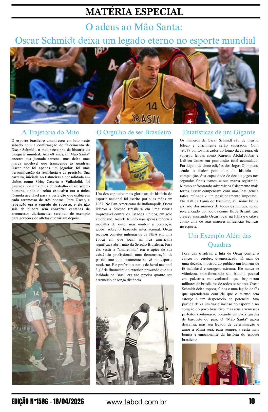 O Brasil se despede de Oscar Schmidt, o “Mão Santa”, maior cestinha da história do basquete e ícone do esporte nacional.